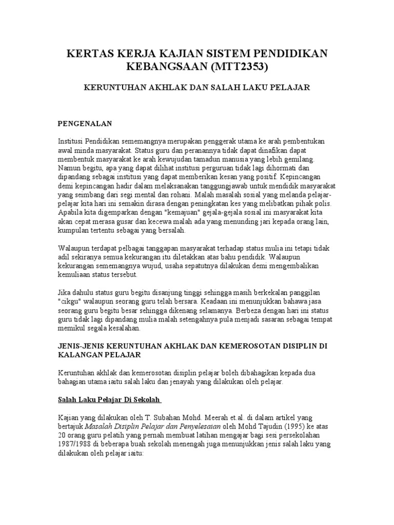Related image with contoh karangan 4.0 pendekatan menangani masalah disiplin 4.1 peranan dan tanggungjawab ibu bapa setiap ibu bapa mahukan anak anak mereka menjadi insan. Masalah disiplin pelajar semakin meruncing. .masalah disiplin boleh dikaitkan dengan kegagalan pelajar di sekolah untuk mematuhi peraturan yang telah ditetapkan. Pelajar sering menganggap rakan sebaya mereka sebagai rakan yang sebenar. Peranan yang dimainkan oleh guru kaunseling dalam membentuk keperibadian seseorang.