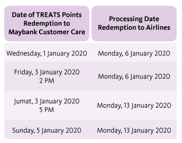 Maybank Credit Card Point Redemption - Treats points redemption is based on the accumulated number of treats points recorded on the billing statementof maybank credit.